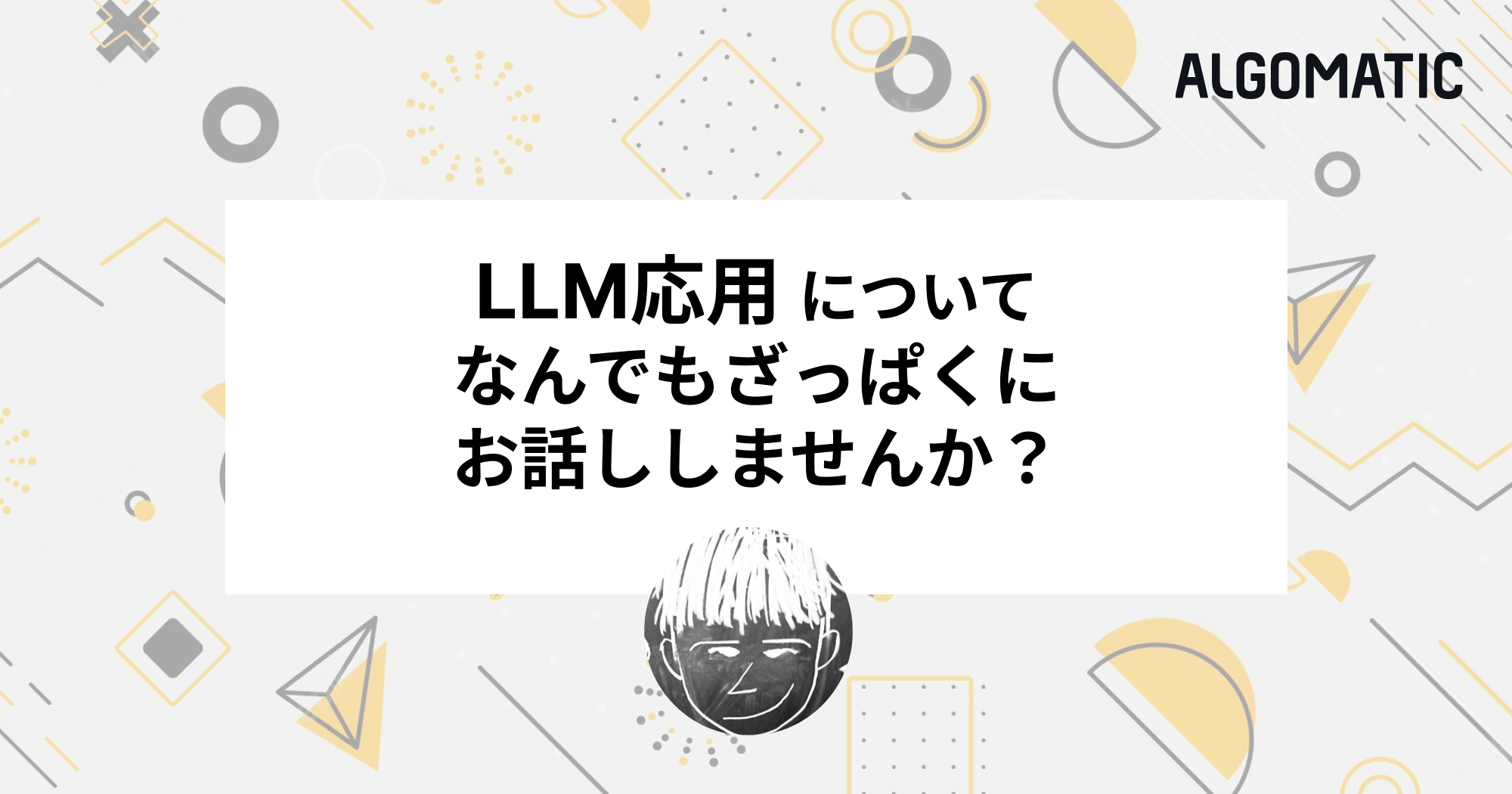 LLM応用ついてなんでもざっぱくにお話ししませんか?