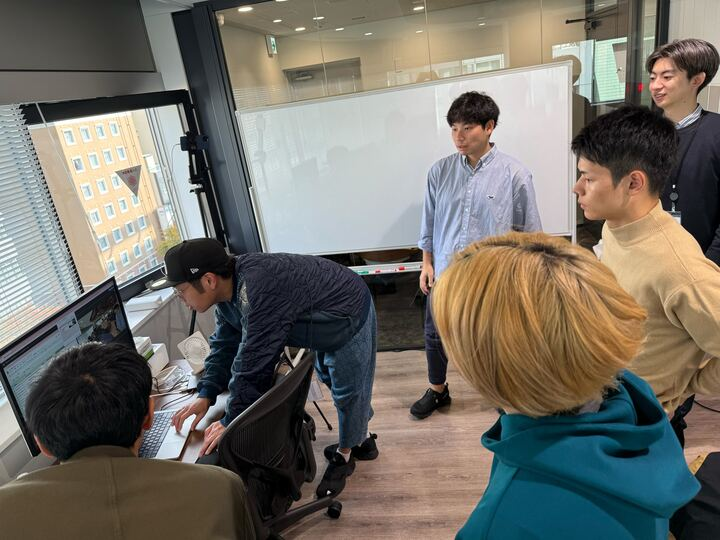 デイリーMTGの様子(元気良くやるため立ってMTGしてます)