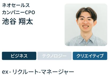 ネオセールスカンパニーCEO メッセージネオセールスカンパニーの事業カンパニーミッション:人間味のある仕事を増やす事業内容:営業活動をAIで支援するネオセールスシリーズ第一弾のサービス「アポドリ」ネオセールスカンパニーの組織ネオセールスカンパニーの強みチーム求める人物像:どんな人が組織に合うのか?記事の発信皆様と解決していきたい事業課題採用ポジション選考プロセス気軽にカジュアル面談に申し込みください!