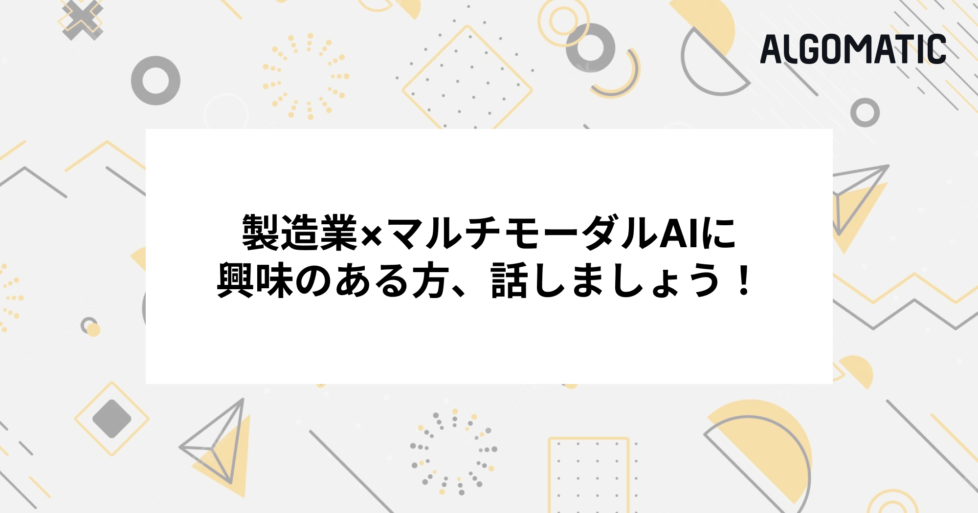 製造業×マルチモーダルAIに興味のある方、話しましょう!